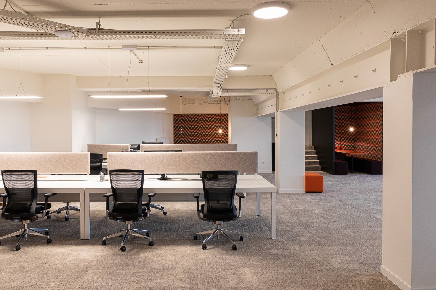 De ruimte is volledig ingericht inclusief meubilair. Open ruimte, phoneboots, concentratie- en ontspanningszones, vergaderzalen (4–30 pers.) en eetruimte met uniek Scheldezicht.